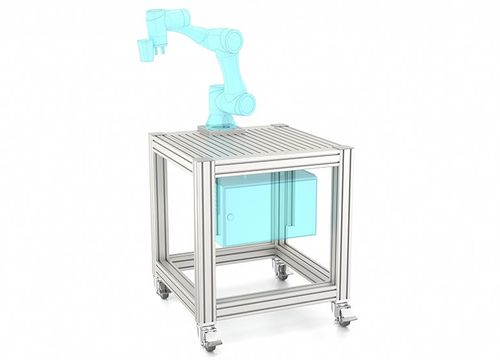 EX-01226Its high degree of flexibility makes this workstation the perfectly organised basis for cutting-edge production, simplifying the development of new production methods. The full-size item Groove Plate offers a universal fastening option for fixtures, the cobot and other accessories. Cable conduits integrated into the Profiles XMS route cables safely. The cleanly closed outer surfaces and doors turn the load-bearing frame into a generously sized under-bench cabinet with storage space for technology and working materials.